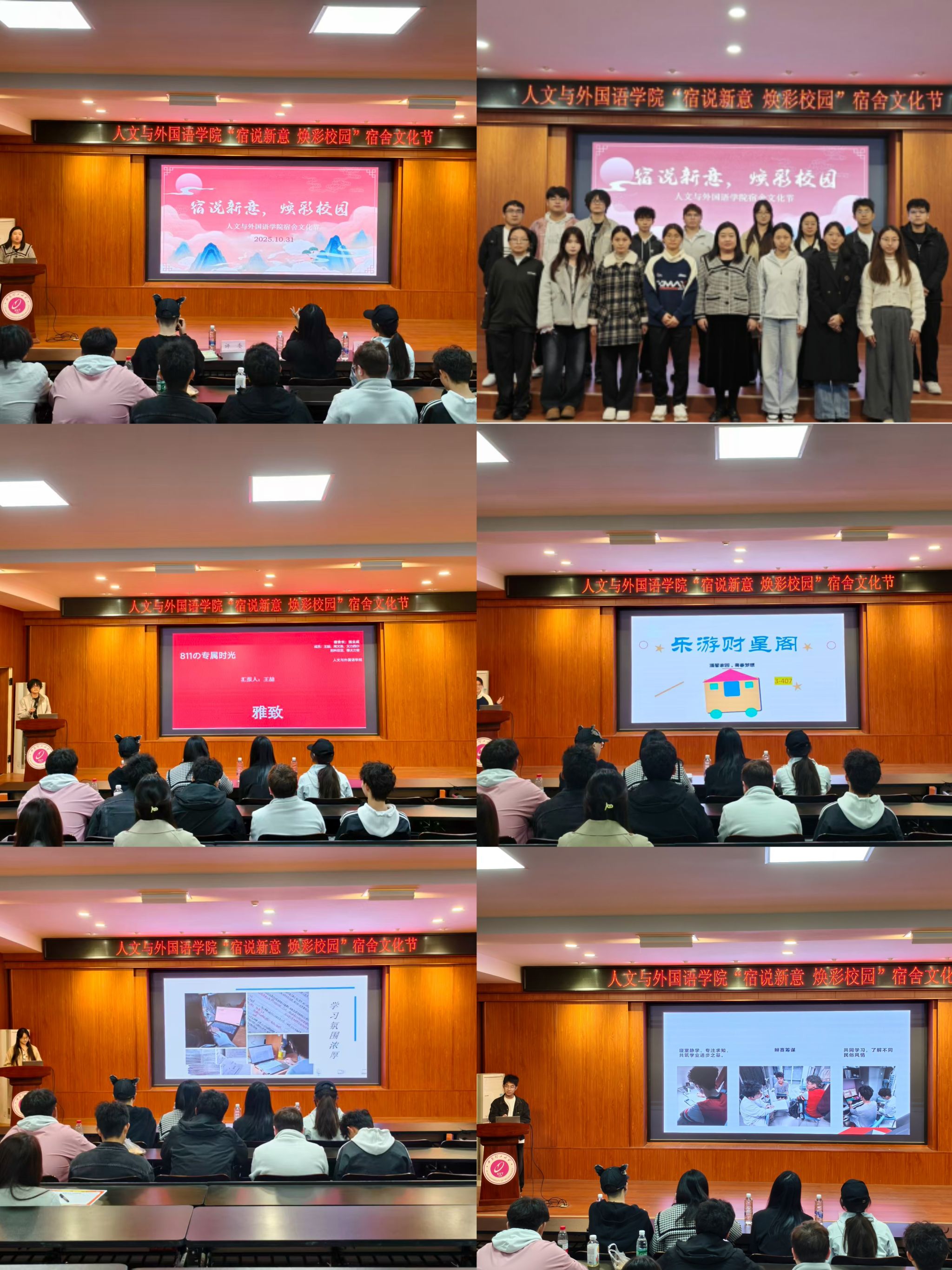 11月10日,人文与外国语学院“宿说创意,焕彩校园”宿舍文化节在教11楼模拟法庭圆满落幕。学院团委书记周莹、大一学生参加了本次活动。