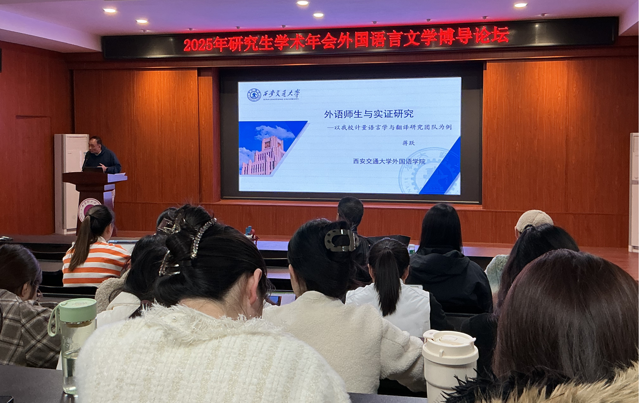 2025年11月13日下午,西安交通大学外国语学院博士生导师、富布赖特学者蒋跃教授应邀莅临我院,开展了题为《“从感性的理解”到“理性的解码”-外语专业师生的科学素养与跨界成长之路》的学术报告,学院全体外语专业教师和研究生现场参加学习,报告由黄勇副院长主持。