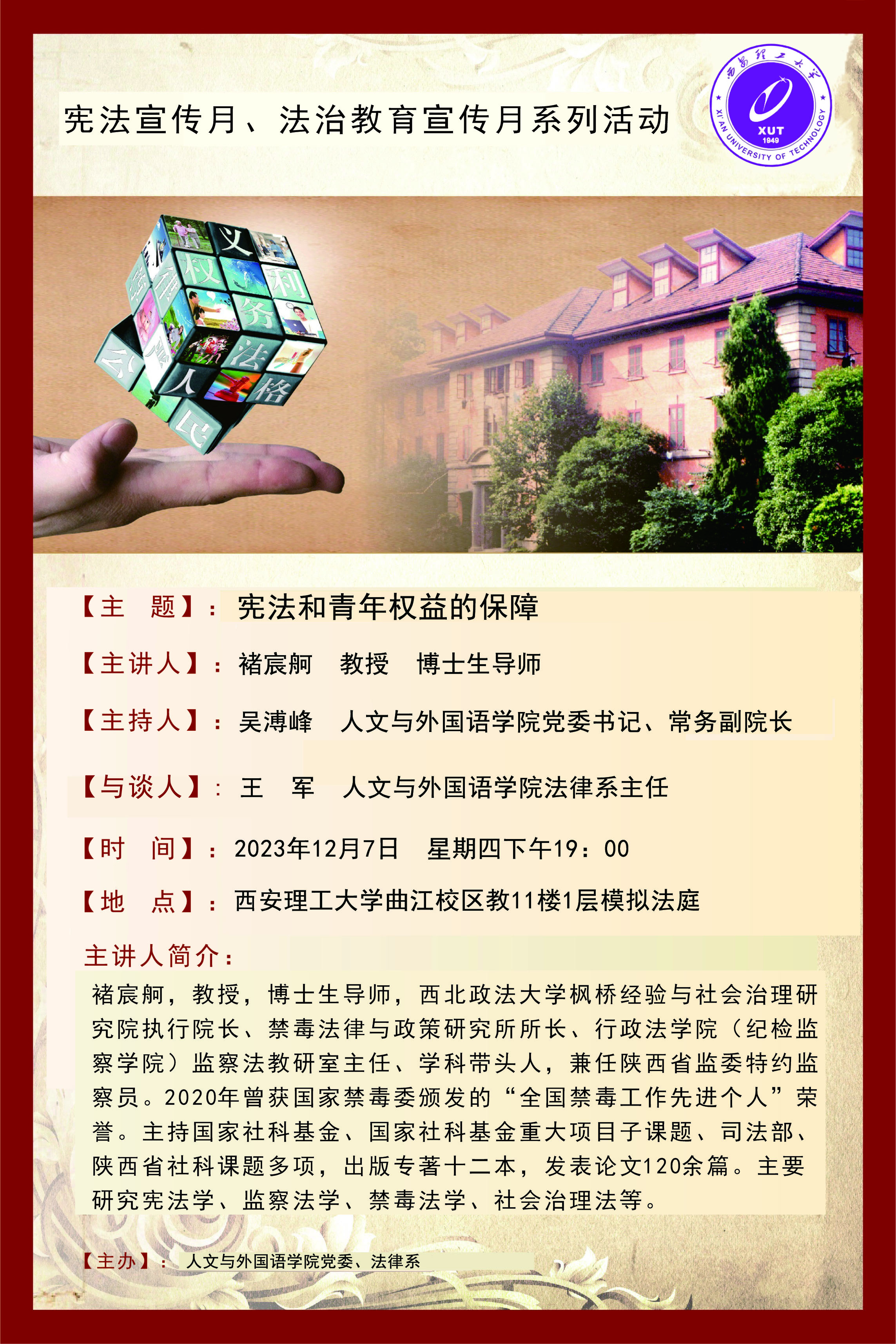 【人文雅韵】西北政法大学褚宸舸教授宪法学术讲座通知