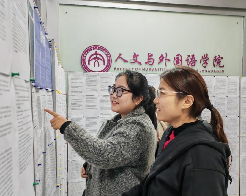 学生们将自己的论文以图文并茂的方式制作成墙报,在人文与外国语学院二楼大厅进行展示。此次展出对学生来说是展示自己研究成果、相互学习交流的一个重要平台,拓宽了学术视野,了解了相关领域的最新研究动态和趋势,促进了同学们之间的学术交流与合作。