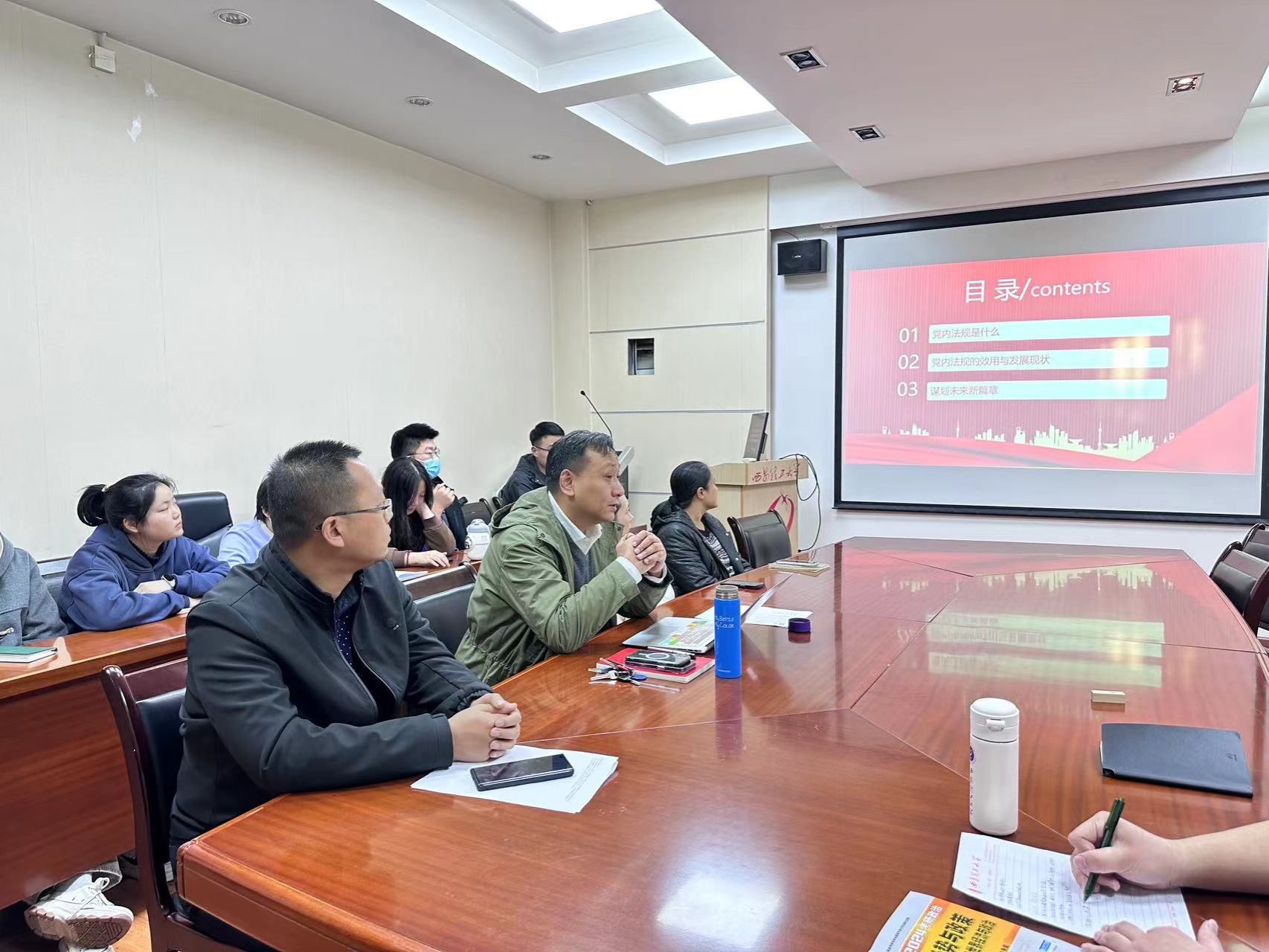 法律系党支部书记王军在活动中做了党内法规主题讲座,从党内法规的起源与发展、党内法规的特点与作用,党内法规立法与学术研究的现状和展望等方面做了深入浅出的讲解。通过讲座使支部全体党员对党内法规有了更加深入的理解和掌握。