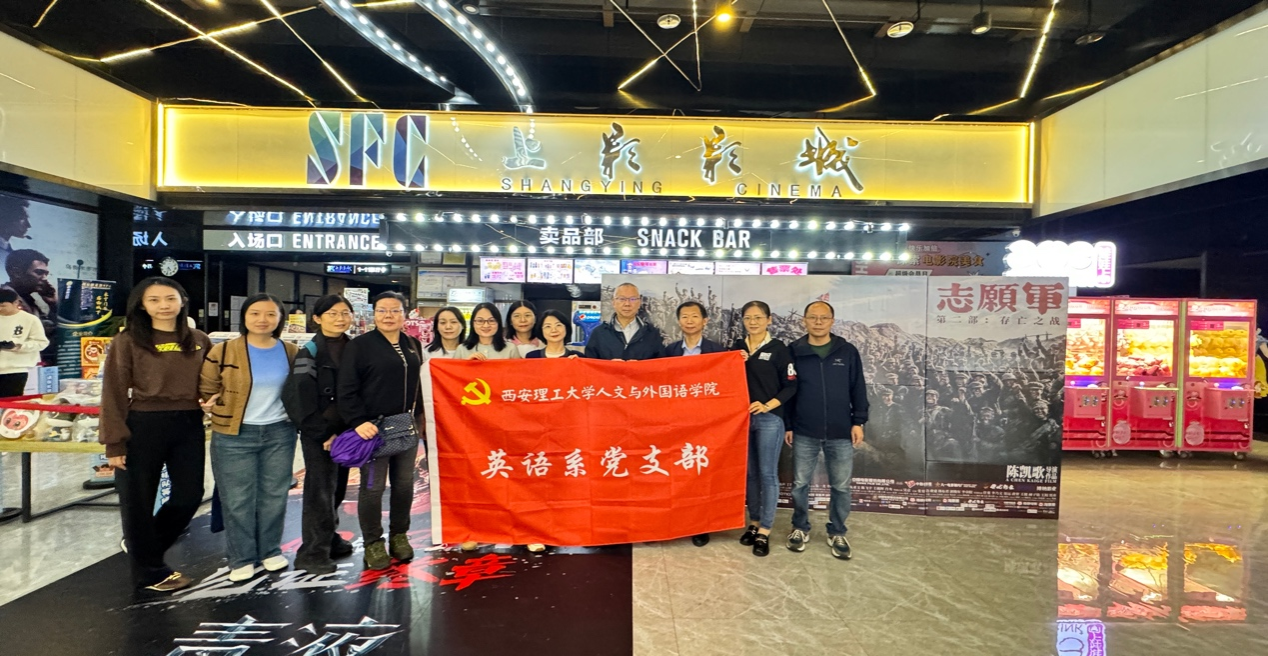 10月17日,西安理工大学英语系党支部举办了一场主题党日活动,全体党员齐聚一堂,共同观看了爱国题材电影《志愿军:存亡之战》。此次活动旨在通过影片,进一步激发党员干部的爱国情怀,增强党性修养,缅怀革命先烈,弘扬革命精神。