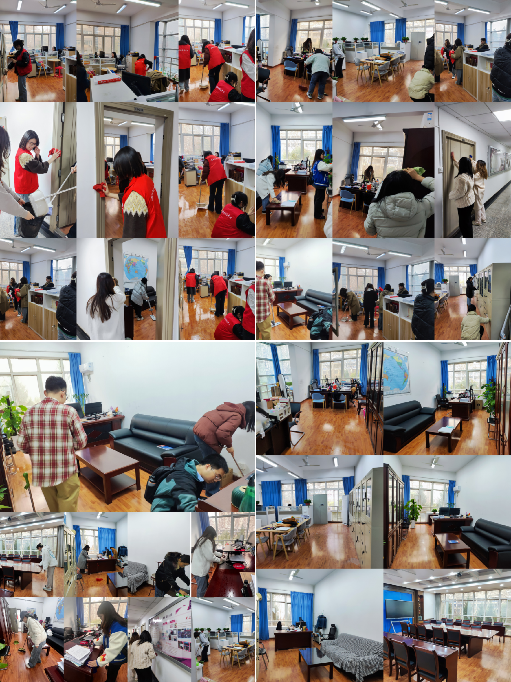30余名学生党员身着统一志愿者服装,携带清洁工具,分组对学院办公室、橱窗等展开全方位清扫。活动中,党员们细致擦拭办公桌椅、整理文件资料、清洁地面门窗,并对办公设备进行除尘维护。经过党员同志们的劳动,办公室环境焕然一新,学院环境更加整洁有序。最后,赵腾在活动总结中强调:雷锋精神永不过时,作为学生党员,既要将服务意识内化于心,更要外化于行,通过日常的点滴实践彰显共产党员的先锋本色。