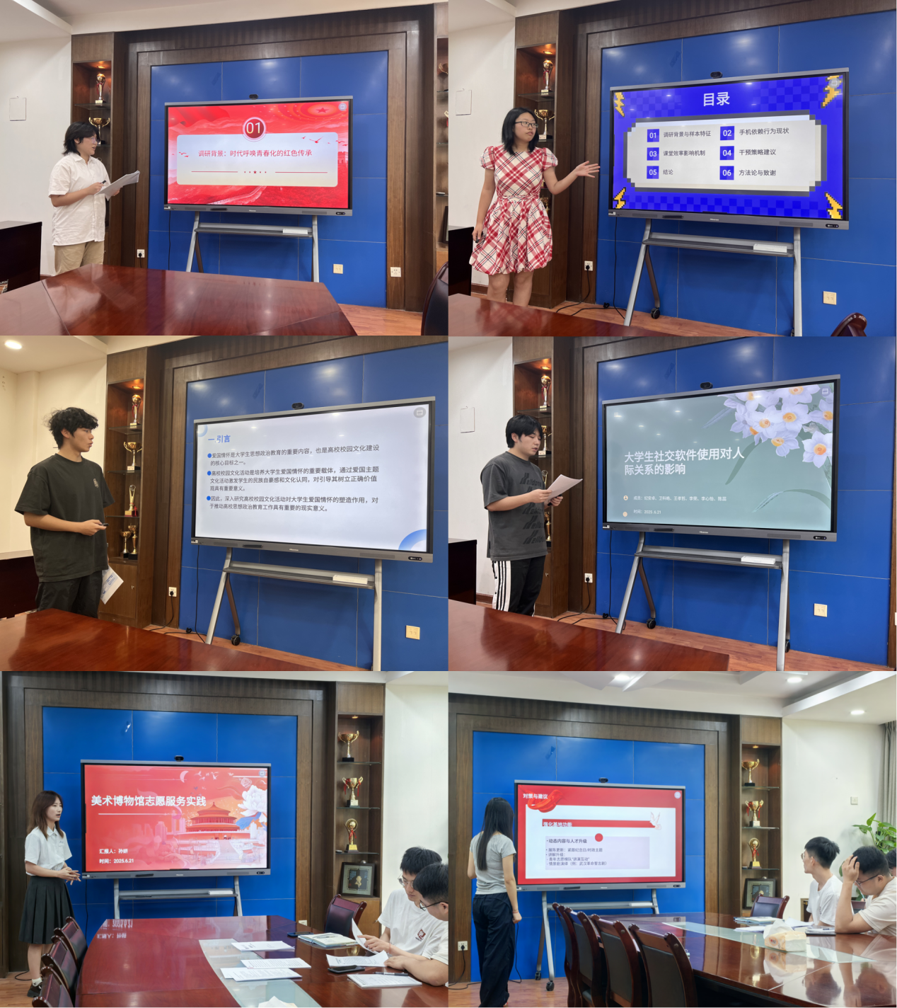 答辩现场,六个小组紧扣“青年成长与时代使命”主题,结合社会热点与校园实际,展示了丰富多样的调研成果。各小组通过精心制作的PPT,综合运用详实的调研数据、生动的校园问卷结果、鲜活的红色基地走访记录以及实践案例,清晰阐述观点,逻辑严谨。评委老师们从选题的现实意义、调研方法的科学性、论证的逻辑性以及解决方案的可行性等多个维度,进行了专业细致的点评与指导。